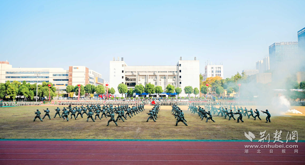 荆楚网(湖北日报网)讯(记者何鹏 通讯员史可、蒋媛媛 摄影孙昌伟、王诚)迷彩映初心,青春赴新程 。11月15日下午,武汉职业技术大学2025级新生军训汇报表演暨表彰大会在该校光谷校区田径场举行,一场青春与汗水交织的成长盛宴拉开序幕。